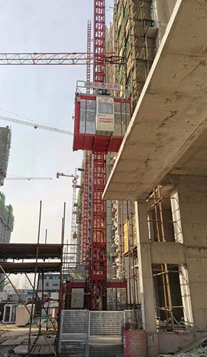 SC系列施工升降機(jī)是靠電機(jī)驅(qū)動(dòng)齒輪,在齒條上上下滾動(dòng)來(lái)提升吊籠內(nèi)人和貨物的一種電梯,該設(shè)備安裝有防墜落安全裝置、超載裝置